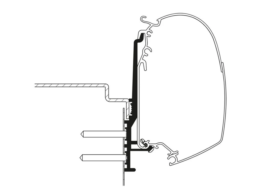 Thule biedt de mogelijkheid om luifels op het dak of aan de wand van je caravan te monteren. Wanneer mogelijk heeft het de voorkeur om de luifel op het dak te installeren. De luifel staat hierdoor hoger en er blijft meer ruimte over aan de wand, zodat je bijvoorbeeld nog een voortent kunt plaatsen. Met deze adapter kun je een serie Thule Omnistor 5200 luifel monteren op een Knaus Tourer CUV 500. Monteer de luifel met behulp van de adapters en creëer je persoonlijke plekje, beschermd tegen de zon en regen.